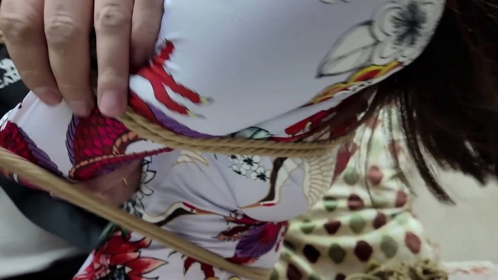 #禾一原创 缚虐关关 日式紧胸缚 强制堵嘴 大量口水 瑜伽裤尽显身材
