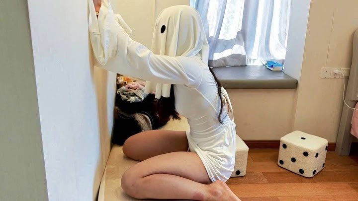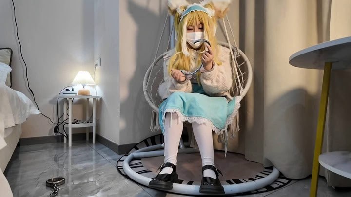 #执念原创 贝壳头瑜伽裤白袜,健身少女强高床上当狗,镣铐铐住双脚,zdb按压下面,紧紧贴合皮肤,zdb套上白袜,展示玉足,足控狂喜