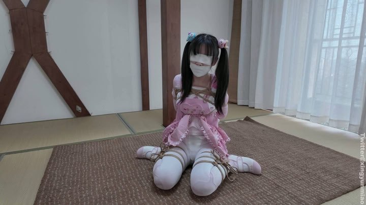 #鹿角与猫爪 真妹子新模崽崽首发——白丝女儿服|折腿跪立钢架直臂拘束|泡棉胶带蒙眼封嘴|绷带全包头感官剥夺|塑料袋套头呼控|穿戴啵啵贝边电击边震动还能吮吸